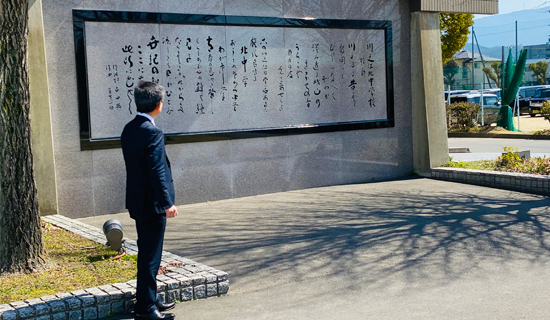 コロナ禍を乗り越え、待望の通常開催となった母校・川之江北中学校の第60回卒業式に学校運営協議会委員として臨席しました。卒業生そして保護者のみなさんご卒業おめでとうございます。希望に満ちた新しいステージへの旅立ちをお祝いし、久々の校歌を高らかに歌ったあとで、10年前の創立50周年記念事業で整備した前庭に立ち、暖かな春の陽ざしを受けて輝く校歌の石板に見惚れました。