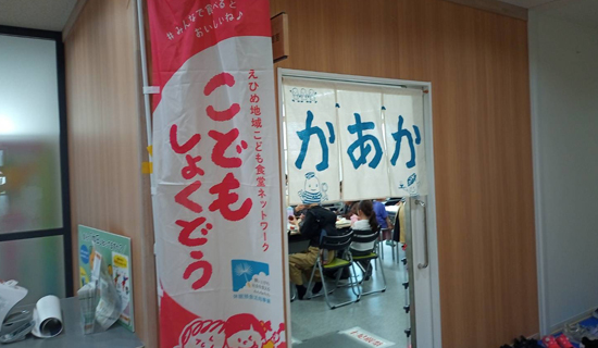 「地域ができること」のはじめの一歩として、毎日の食事が十分でない子どもたちに愛情あふれる食事提供等を行い、心温まる場所で地域の大人が子どもたちに寄り添って成長を見守ろうと、川之江ふれあい交流センターで毎月1回実行委員会形式のこども食堂「かあか」を開いています。笑顔あふれるコミュニティカフェ「かぁねえ あつまる かふぇ」は、もうすぐ7年目を迎えます。