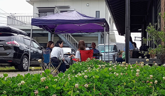 「新宮を満喫してきてねー!」明るい声援に背中を押されてお店を出て約6時間、「この大自然こそが我がまちの宝」と思わせてくれる景色に抱擁されつつ、地域のみなさんの声に耳を傾けるけんじの行脚を始めました。人口減少が避けられない中で、先祖伝来の土地に生きる現実の厳しさと逞しさを教わることの連続でしたが、杉谷の避暑地で広げた真鍋商店さんの日替弁当が活力源でした。