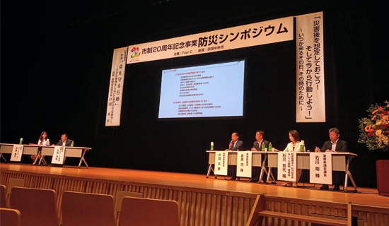 前陸前高田市長の戸羽太さんも、けんじにとっては戦友の類で、しかも武功神々しい名将です。前回は、岩手の地で全国の同志とともに旧交を温めましたが、今回は約1年ぶりの再会で、まちづくり団体・Four-Cさん主催の防災シンポジウムで講師&パネラーとして熱弁をふるって戴きました。参加した多くの市民と共に、命を守るために「今からできること」を確認し合いました。