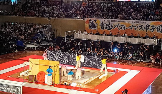 川之江栄町・駅通り商店街の交差点で開催された第1回大会から、けんじは多くの仲間と共にボランティアで大会運営を支えてきました。「仕事」という範疇を超越して運営にあたる市役所等の関係者の皆さんや高校生ボランティアの熱い想いを結集して、市制20周年で過去最多の出場校をお迎えした第17回大会も山盛の感動の下に幕を閉じました。何よりも、母校川之江高校がオオトリを飾る熱演を披露してくれたことが歓喜の極みでしたが、今回も全ての学校の演技・作品が、「現状を打破して困難を乗り越え、周りの人々への感謝を忘れず、仲間を信じて心を一つにし、勇気をもって未来を拓け!」という示唆を、20歳になったこのまちに、そしてけんじの胸に焼き付けてくれました。