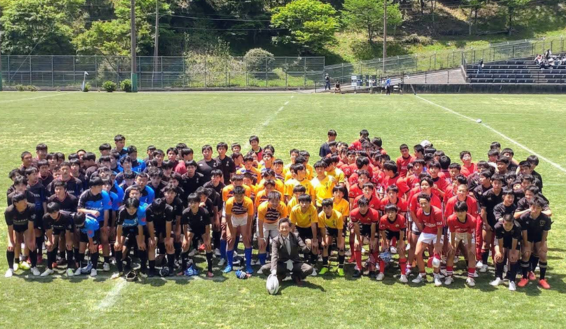 山が萌え風薫る5月、樹々と芝生の新緑が眩しいスカイフィールド富郷で、第19回の四国中央市長杯ジュニアラグビー大会が開かれ、中四国の各地から約500人のジュニアラガーマンと保護者応援団を合わせ1000人を超える方々が今年も嶺南に来ていただきました。新米市長のけんじが優勝カップを手渡したのは倉敷RSジュニア。地元宇摩RSのチームは今後に希望を繋ぎました。